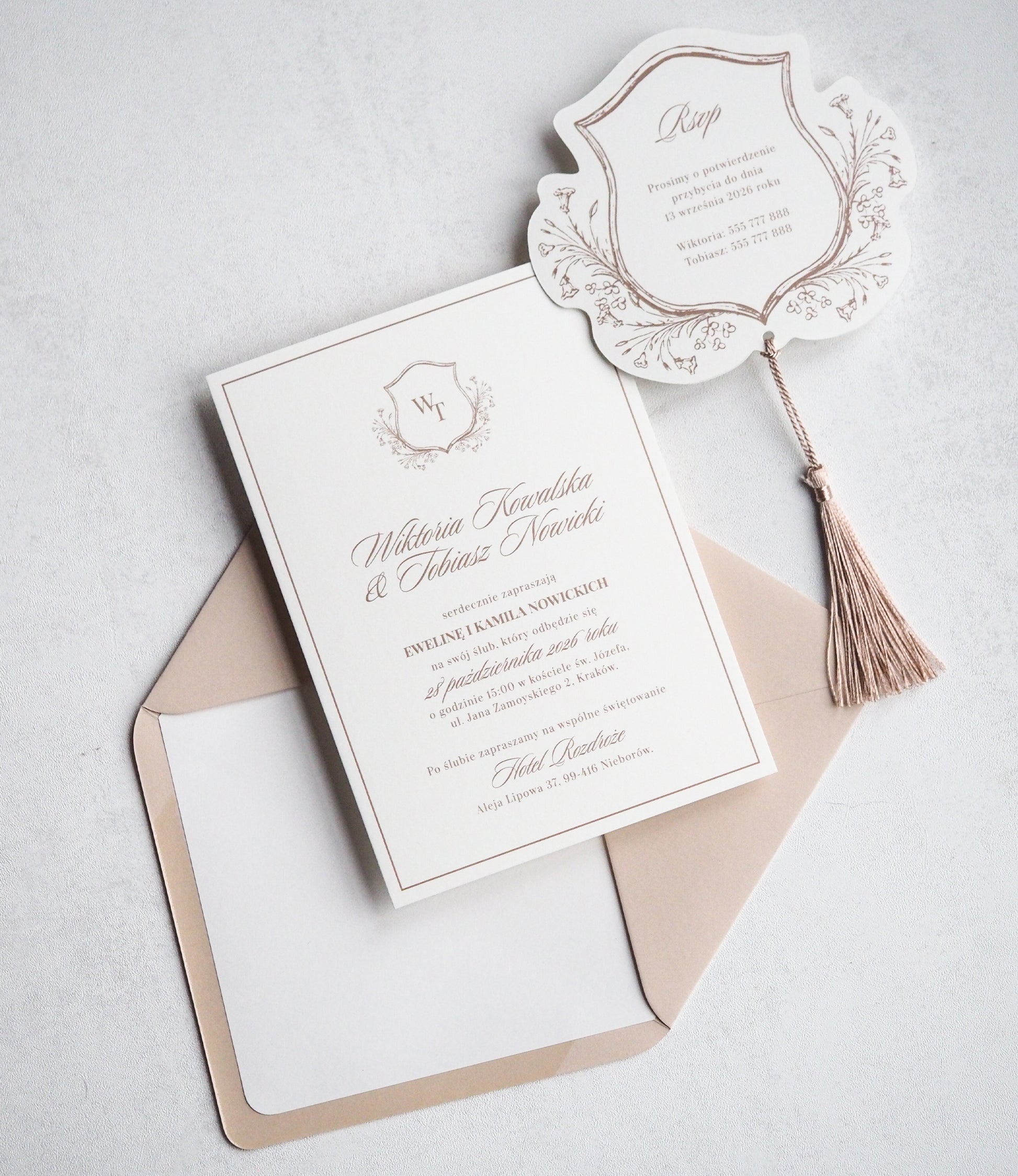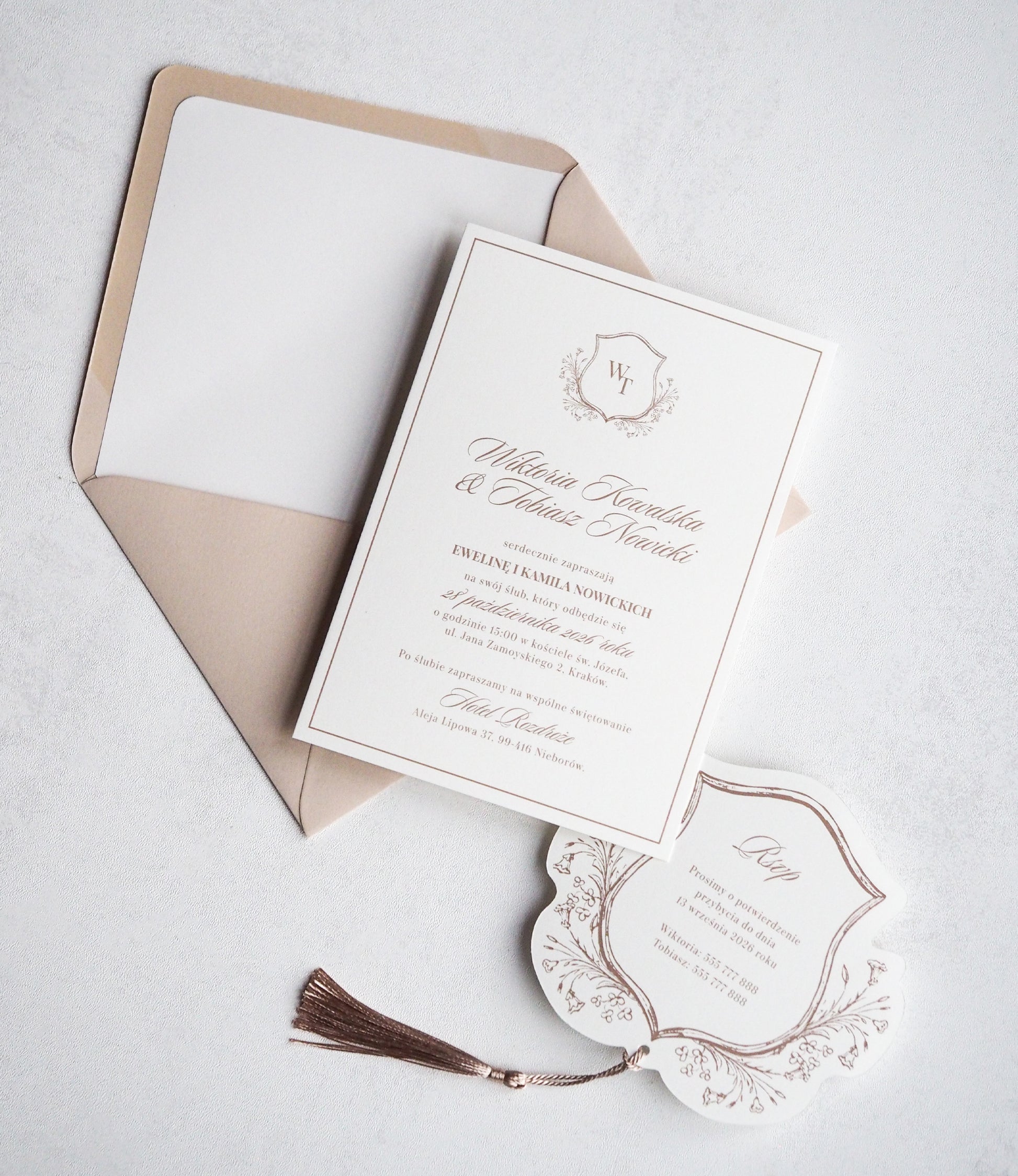 Zaproszenie wydrukowane jest na wysokiej jakości papierze w kolorze ivory.